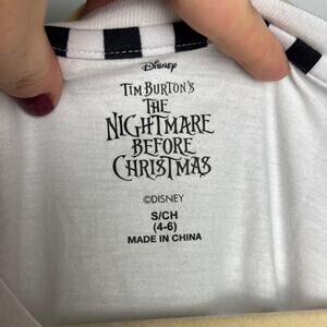 This Disney top features a bold Halloween-themed graphic from 'The Nightmare Before Christmas' on a crisp white short sleeve tee. The vibrant comic-style illustration stands out, making it a perfect choice for fans of spooky, playful designs. Crafted with a casual crew neckline, this tee combines comfort with a touch of festive flair.