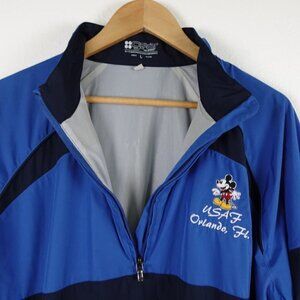 Disney Windbreaker Rain Jacket Men's Size L Blue Mickey Mouse Logo USAF 1/4 Zip