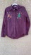 Disney Winnie The Pooh Embroidered Christmas Button Down Maroon Blouse Sz Large