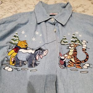 Disney Winnie The Pooh Embroidered Denim Button Down