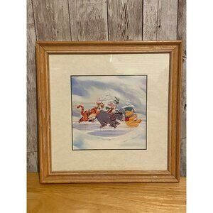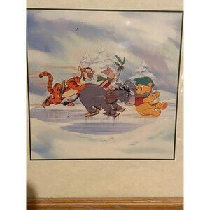 This framed art print features beloved characters Winnie the Pooh, Tigger, Eeyore, and Piglet in a delightful winter scene. Crafted with care, it captures the playful essence of the 100 Acre Wood, making it a charming addition to any collection or space.
