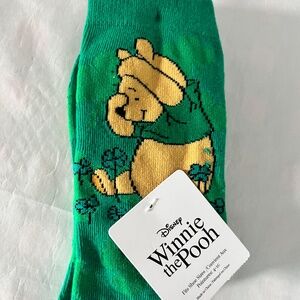 Disney Winnie The Pooh & Shamrock Green Crew Socks St. Patrick’s Day - NWT Size 4-10 adult women’s.