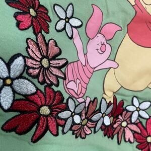 Disney Winnie The Pooh & Piglet Womens Medium Green T-Shirt Embroidered Flowers