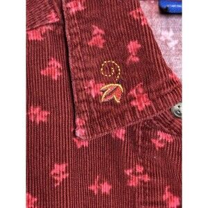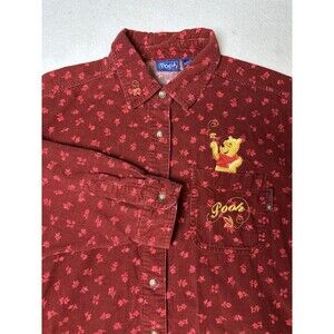 Disney Winnie The Pooh Red Embroidered Corduroy Button Up Fall Shirt Size XL