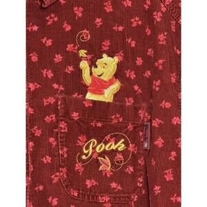Womens Disney Winnie The Pooh Red Embroidered Corduroy Button Up Shirt Size XL.