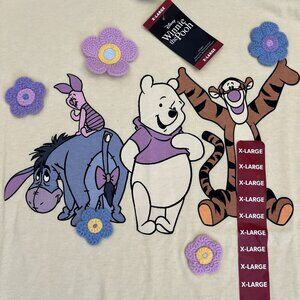 Disney Winnie The Pooh and Friends Crochet Flowers T-Shirt XL Light Yellow NWT