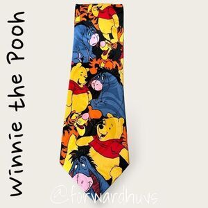 This is a listing for a preowned Winnie the Pooh, character tie, which is in good preowned condition. This tie has Pooh, Tigger, Eeyore, and is just so full of character! What fun!!