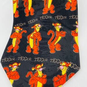 Disney Winnie the Pooh Black Orange Tigger Cartoon Colorful Wide Width Tie