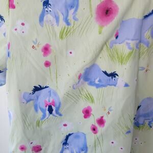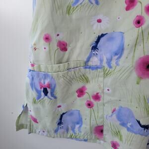 Disney Winnie the Pooh Eeyore Scrub Top XL Green Floral Print V-Neck Short...