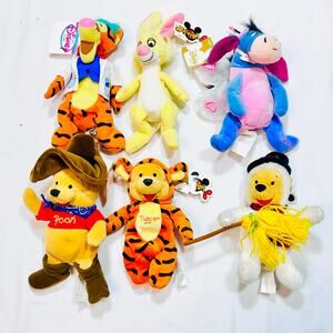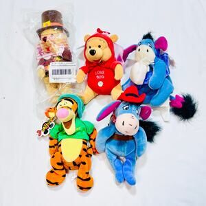 Disney Winnie the Pooh & Friends Bean Bag Plush Collection Lot of 16. Each plush measures approximately 8" long. Soft bean bag style, new with tags, vintage from the 1990s and 2000s.