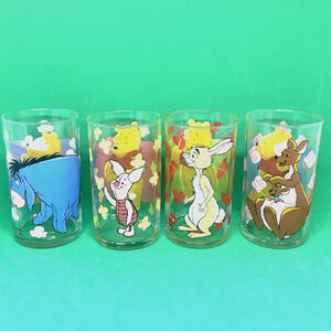 Disney Winnie the Pooh & Friends Drinking Glass Lot of 4 Eeyore Piglet Rabbit