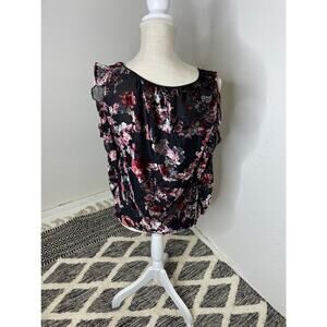 Floral velvet burnout cold-shoulder blouse in black with romance