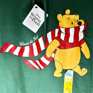 Primark Exclusive Disney Winnie the Pooh Hoodie. Winnie the Pooh wearing a scarf on a green hooded sweatshirt.
