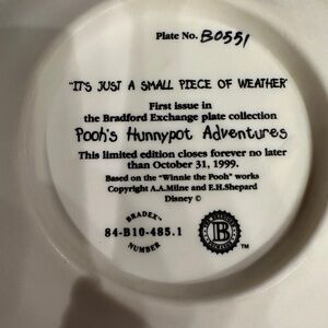 Disney Winnie the Pooh It’s Just A Small Piece of Weather Ceramic Art Plate