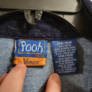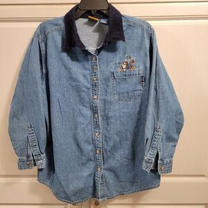 Disney Winnie the Pooh Long Sleeve Denim Button Up Shirt with Corduroy Collar