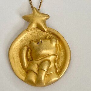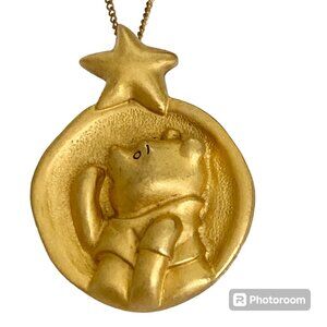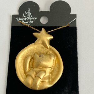 Disney Winnie the Pooh Necklace Vintage Gold Plated Charm 18" Disneyana Signed