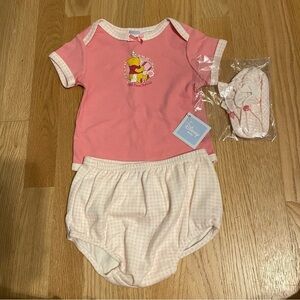 Disney Winnie the Pooh Onesie Outfit NEW 6-9 months Vintage 90s Hat Bunnies