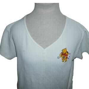 Bring a dose of nostalgic comfort to your loungewear with this Disney Winnie the Pooh sleep top. Crafted from 100% cotton in a soft thermal waffle texture, this short-sleeve henley features an embroidered Pooh bear with red, white, and blue star accents — perfect for fans and collectors alike.