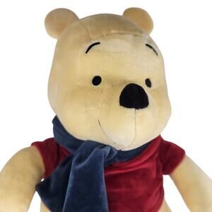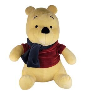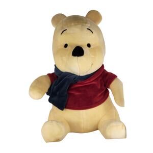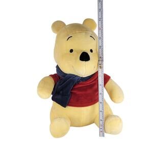 Disney Winnie the Pooh plush, 12 inches tall, from Kohl's The Big One collection. Features classic red shirt and blue scarf. Soft faux fur shell made of 100% polyester with polyester and polyurethane filling. In good pre-owned condition, clean and ready for a new home.