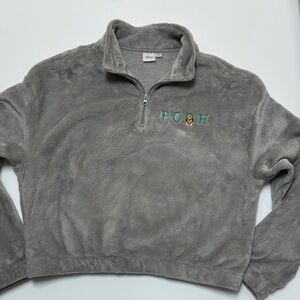 Disney Winnie the Pooh Quarter Zip Cropped Fluffy Fleece Sweatshirt