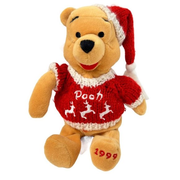 Disney Winnie the Pooh Winter Sweater Mini Bean Bag 8" Plush 1999 With Tags