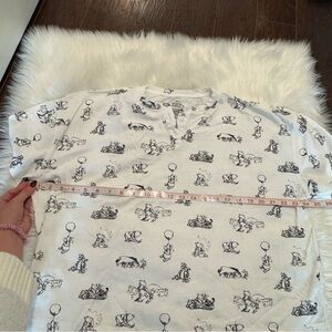 Drift off to sleep counting donkeys instead of sheep as Eeyore is featured along with his friends from the Hundred Acre Wood in the allover print on this coordinating sleepwear set. The shorts and short sleeve henley top both feature black and white illustrations of Winnie the Pooh, Piglet, Tigger and their gloomy pal.