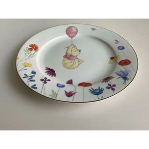 Disney Winnie The Pooh Balloon Spring Floral Dinner Plate Golden Rim Easter New