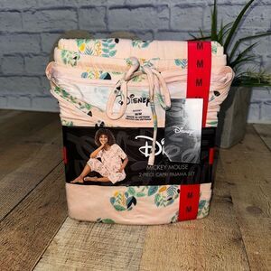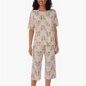 Disney Womens 2 Piece Capri Pajama Set medium M, Mickey Mouse Pink NWT