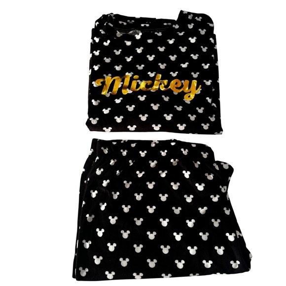 Disney Women's 3XL Mickey Mouse Pajama Set Black Soft Sleepwear Loungewear EUC