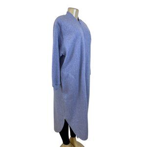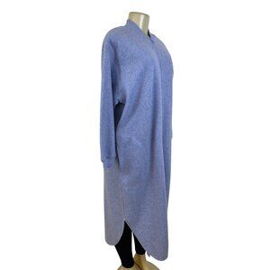 This Disney Women's blue Fleece Long Loungewear features a Minnie Mouse embroidered design. It has a soft fleece material with a front full zipper, side pockets, and a relaxed fit. Charming yet cozy, this piece is ideal for leisurely moments at home.