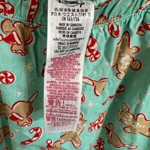Disney women’s size medium pajama set. Charming gingerbread and candy cane design. Soft mint color. Only worn once, from a smoke free home.