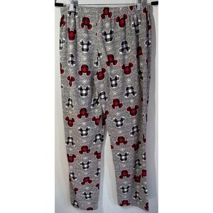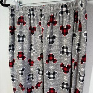 Disney Womens Gray Fleece Pajama Lounge Pants Plaid Mickey Mouse Pull On Medium