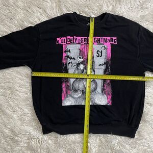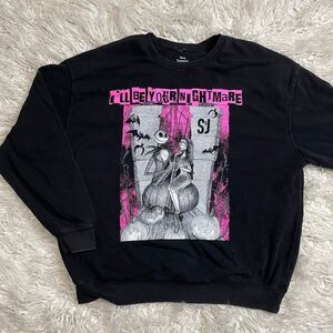 Disney Tim Burton's The Nightmare Before Christmas sweatshirt in excellent pre-owned condition. This black and pink crewneck features Jack Skellington and Sally with a "I'll Be Your Nightmare" graphic. Made from a comfortable 55% cotton and 45% polyester blend, this Y2K original is perfect for fans of the classic film. Size XXL.