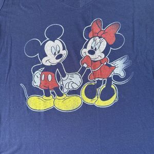 Disney Womens Large Blue Short Sleeve Mickey Minnie Mouse Graphic V Neck Tee