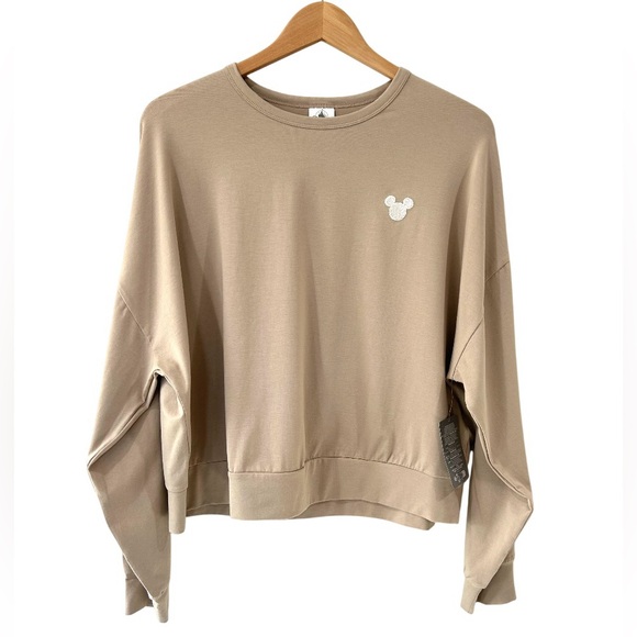 Disney Women's Mickey Mouse Icon Long Sleeve Lounge Top tee M beige cotton NWT
