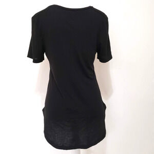 Disney Womens SIZE M Beauty & The Beast Black Blouse Top Round Hem Short Sleeve