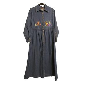 Tags: Disney, Winnie the Pooh, denim dress, shirtdress, casual dress, summer dress, whimsical, fun, Disneyland, Disney World, Disney Parks, embroidered, A-line, long sleeve, button-down, blue, dressy, casual, any occasion, vintage