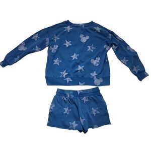 Disney Women's Size XS Blue Star Mickey Pattern Long Sleeve Shorts Lounge Set