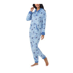 Disney Women’s Stitch Blue Fleece One-Piece Pajamas Medium Hood Plush Cozy