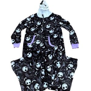 Soft fleece onesie with Stitch design. Features a zipper front and cozy hood.