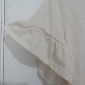 Disney Show Your Minnie Style top. Cream top with round neckline and ruffle sleeves. Minnie Mouse bow printed in front. Super cute and comfortable. Perfect for your next Disney trip.