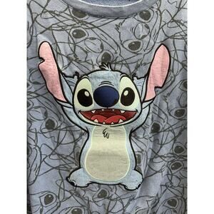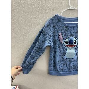 Disney Womens Teens Sweatshirt Size Large Blue Stitch Crewneck Embroidered