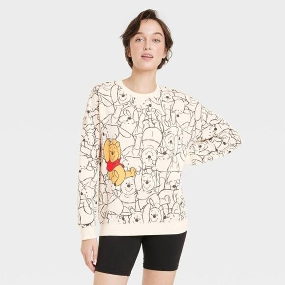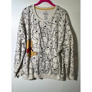Disney Women's White Black Winnie The Pooh AOP Cozy Graphic Sweatshirt Size 2XL