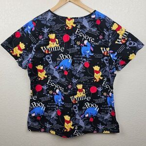 Disney Women's Large Winnie the Pooh Eeyore Black 3 Pocket Scrub Top Colorful