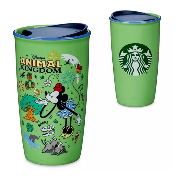 Brand new Walt Disney World ceramic Starbucks inspired Animal Kingdom travel tumbler cup. . Features Minnie Mouse along with some of the notable park attractions.