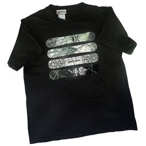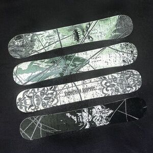 Disney World has this black t-shirt from Expedition Everest that has 4 black and white snowboards on the front that feature Himalayan and Abominable Snowman graphics. 100% cotton, the shirt is brand new...never been worn. It is sized a kids' large.