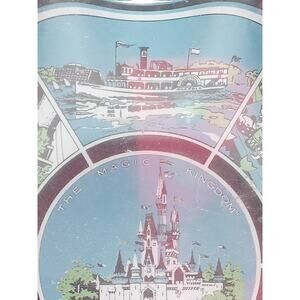 Vintage Disney World Magic Kingdom Blue Glass Souvenir Bowl Park Scene Panels