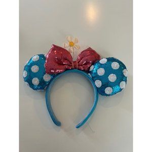 Disney Parks Blue Minnie Mouse Ears with Polka Dots and Flower