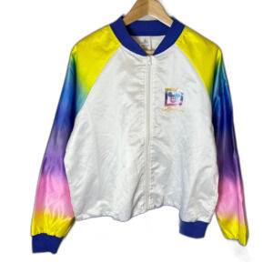 Disney World NWT White Rainbow Tie Dye Satin Bomber Windbreaker Jacket Size XL