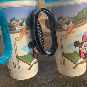 Great pair in used condition. Mugs are clean and in working condition. The one lid does have a small crack but hardly noticeable and shouldn’t make an issue drinking. Awesome mugs for Disney fans or kids on the go. Feel free to ask questions and offers welcome. :)